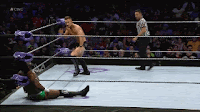 Matt Striker: Breeze tem uma chance de chegar ao corner, ele vai se arrastando para perto de Fandango. Gable faz o tag com Jordan primeiro, Breeze vai chegar... NO! Elbow Drop to the Back by Jordan!